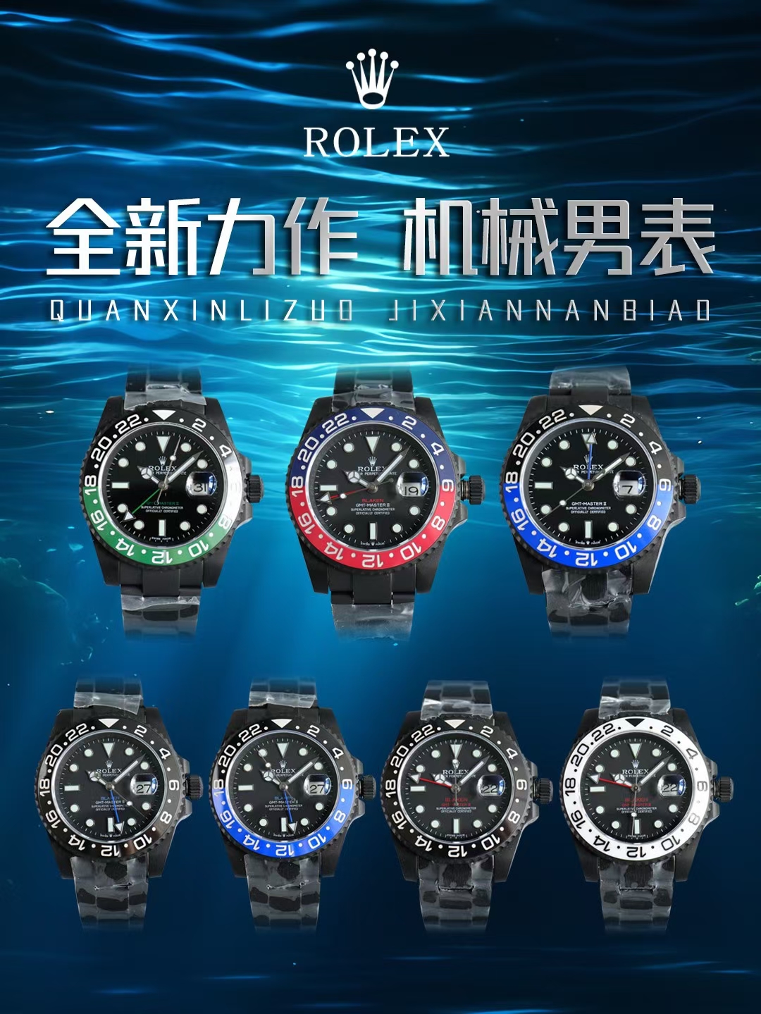 BLACK新品上市 勞力士BLACK官方客製化版格瑞尼治型REVENGE(米爾高斯復仇系列)限量款發售 全新DLC鍍黑工藝+防指紋涂层 一體雙向陶瓷旋轉錶圈 圈口边界變色过渡清晰 超級904L鋼材 搭載最新客製化版Cal.一體3186機芯 与原版一致的GMT針獨立单調時針調節日曆, 時針亦可回調日曆 還原正品全部功能 碳黑版米爾高斯復仇的最強副本。