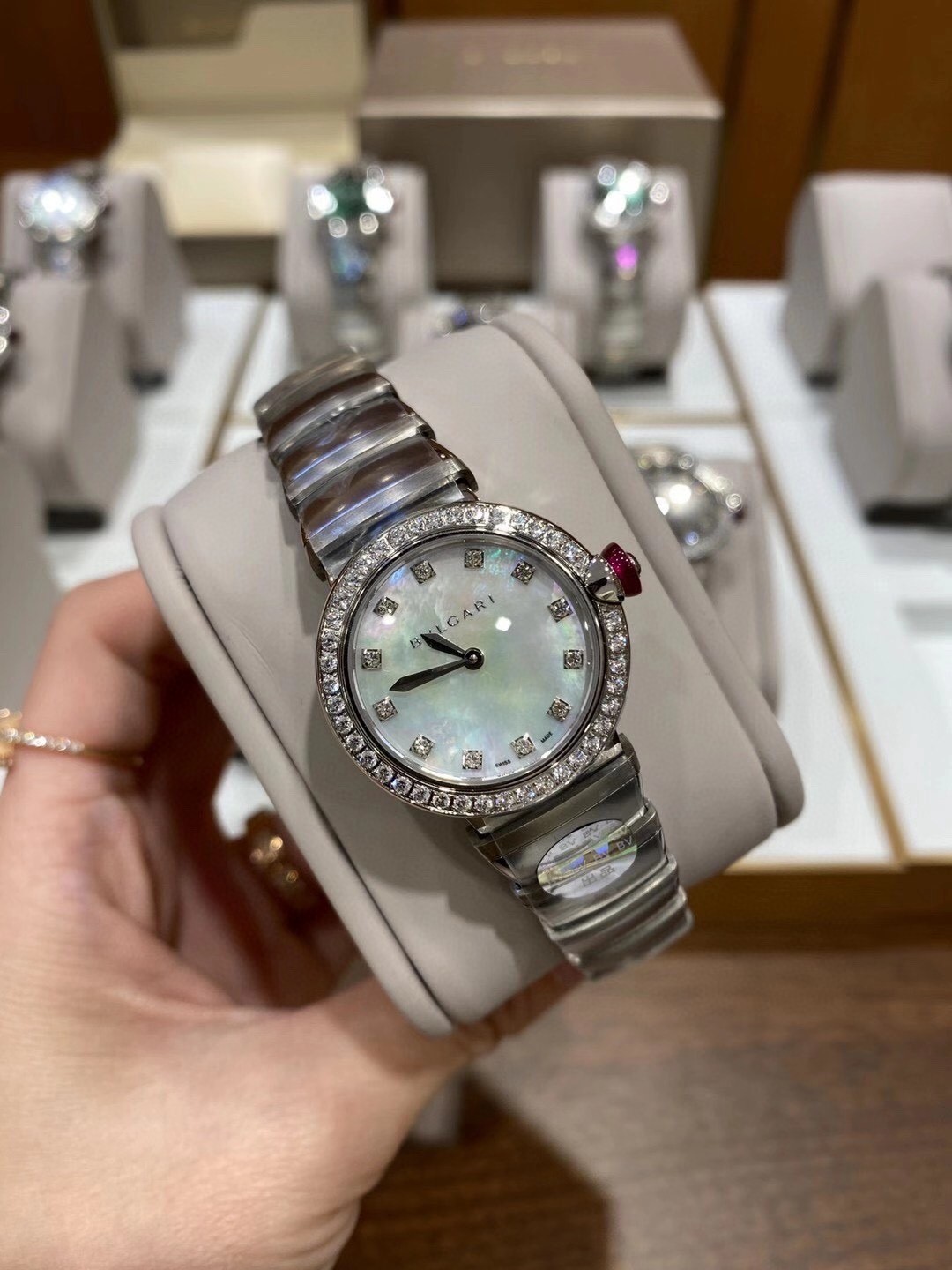 6⃣️錶冠镶嵌凸圆形切割粉紅色寶石与一颗鑽石