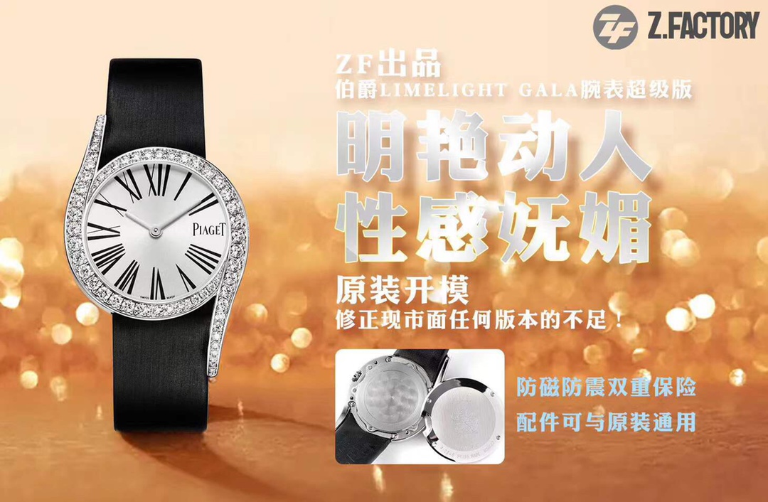 ZF出品伯爵Limelight Gala腕錶超級版,原裝開模,修正現市面任何版本的不足!【精彩細節】腕錶尺寸26mmX7mm1.ZF运用一流的殼套打磨工藝,诠释伯爵優雅气質。2.底蓋的貴金屬鋼印清晰明朗,苍劲有力。3.底蓋結構同步正品,採用雙层防磁防震設計。4.採用客製化版瑞士石英機芯,续航给力,走時穩健,零返修。5.镶饰60颗明亮式切割施华洛世奇美鑽(约0.92克拉)。錶扣镶饰单颗明亮式切割施华洛世奇美鑽(约0.01克拉)動人线条襯托優雅气質 ZF出品 必屬精品!