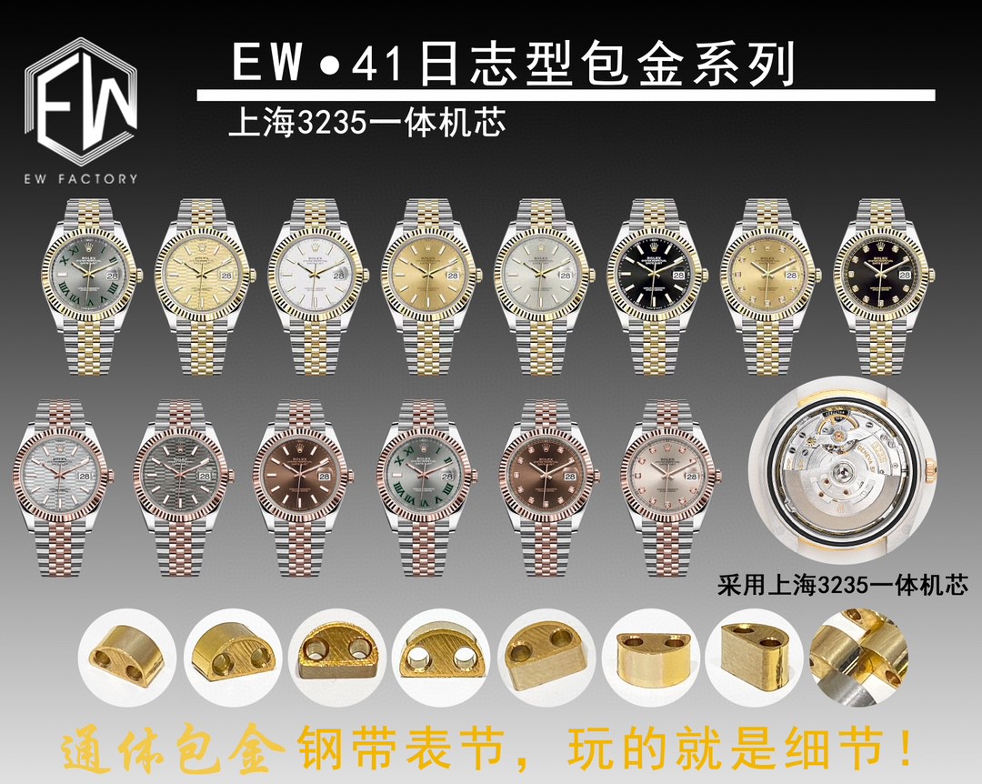②錶殼:整錶採用904L鋼材打造,包金錶帶間金部分同步原裝,側面不漏白。